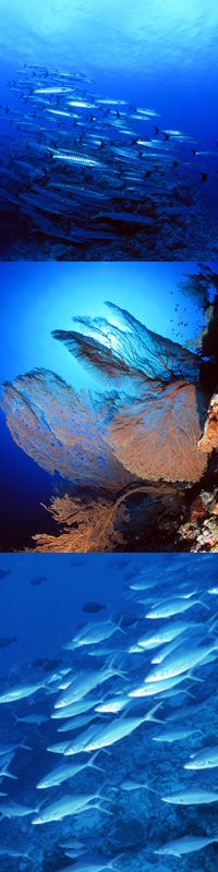 西側のバリアリーフにあるポイントです。巨大なイソマグロ、イーグルレイ、グレイリーフシャーク、シルバーチップシャーク、ツムブリの群れが回遊しています。バレルスポンジやカラフルなソフトコーラルの回りにはストーンフィッシュが生息しています。