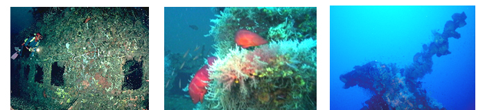 トゥフィの北西のはるか沖合に沈む、沈船、「S’JACOB」はこのエリアでのクルーズ船でのダイビングの最大のアトラクションです。この船は第二次大戦中の1943年3月8日に日本軍に沈められた全長100m、2839トンのオーストラリア軍の貨物船です。トゥフィの北のケープネルソンの西側の沖合い、約10kmの外洋の海底約80mの深さに沈んでいます。回りには何も目印になるものが無く、GPSが無いとアクセスは不可能です。そのためここではフィッシングはまったく行われておらず、無傷の景観が保たれています。トゥフィの東側のように周囲に根がないため多様な生物が常時回遊しています。透明度が良いので深さを忘れがちですが、煙突部分で-40m、甲板部分は-55mと非常に深く潜行は一気に行います。10分程度の減圧潜水となるため30分ほどの減圧時間が必要となります。船に付着したソフトコーラルと黄色いヨスジフエダイや赤いユタカハタとのコンビネーションは大変美しく目を奪われますが、水深が深い上に船が大きいためダイビングは時間との戦いとなります。1994年の初の商業クルーズでは4-5匹の根付きのマンタが確認されています。バラクーダ、ロウニンアジ、クロヒラアジ、ギンガメアジ、ツバメウオの群れが周囲を回遊しています。